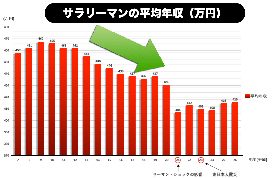 まずはここ数年のサラリーマンの給料の実態は知ってください・・・